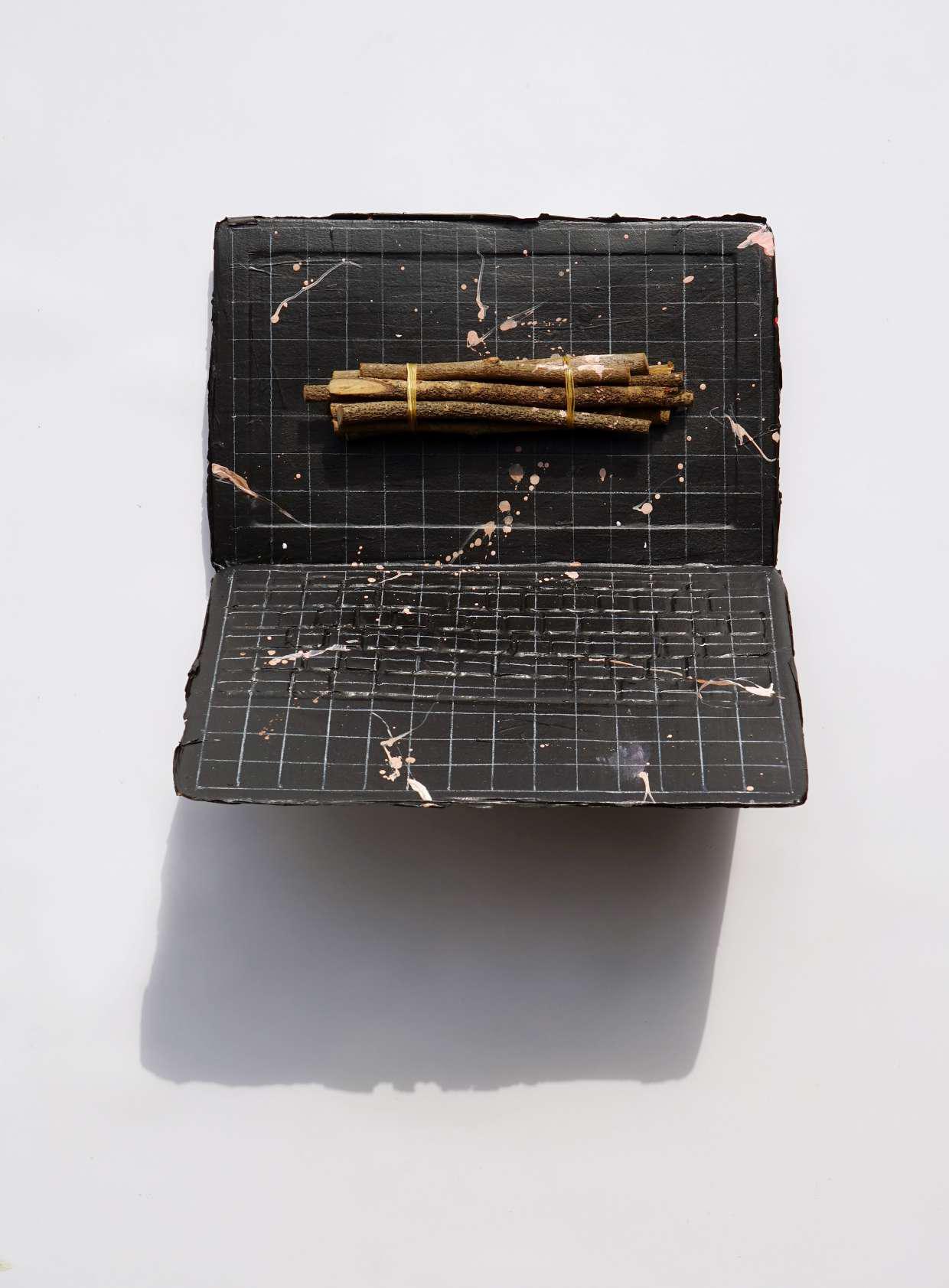 papier-mâché, ink, tobacco juice, acrylic