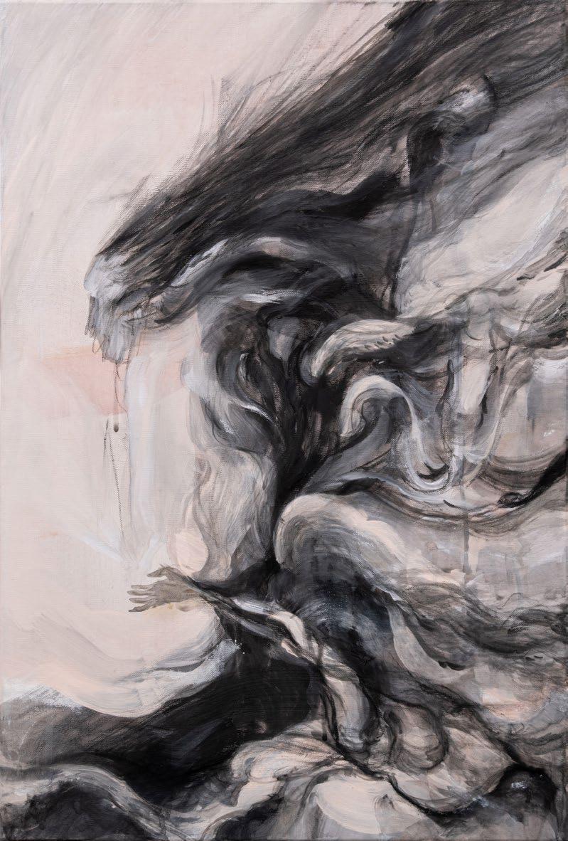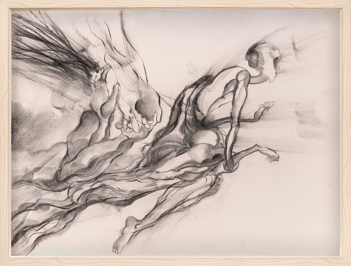 Charcoal, acrylic on paperboard