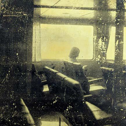 Photo Etching, Acrylic Paint, Rust and Dust on Brass Plate