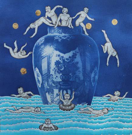 Cyanotype, acrylic, gold leaf 24k on Kamasan canvas