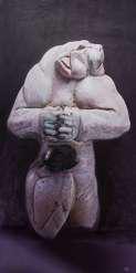 Cetakan kanvas, media campuran, akrilik dan tinta Cina