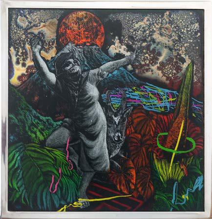 ink, spraycan, chrome on 2 mm acrylic sheet, stainless steel frame