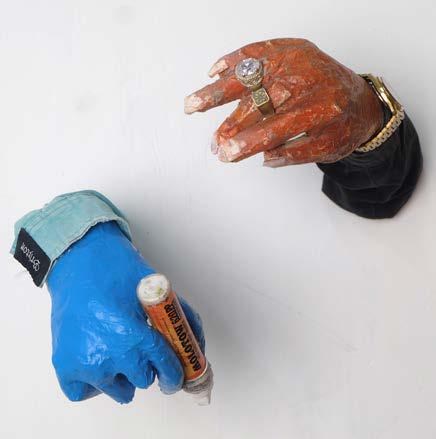 paper, acrylic paint, spray paint, mixed media
