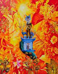 Bamboo Root, teakwood, bone, gemstone, metal, fabric, lamp, Variable dimension