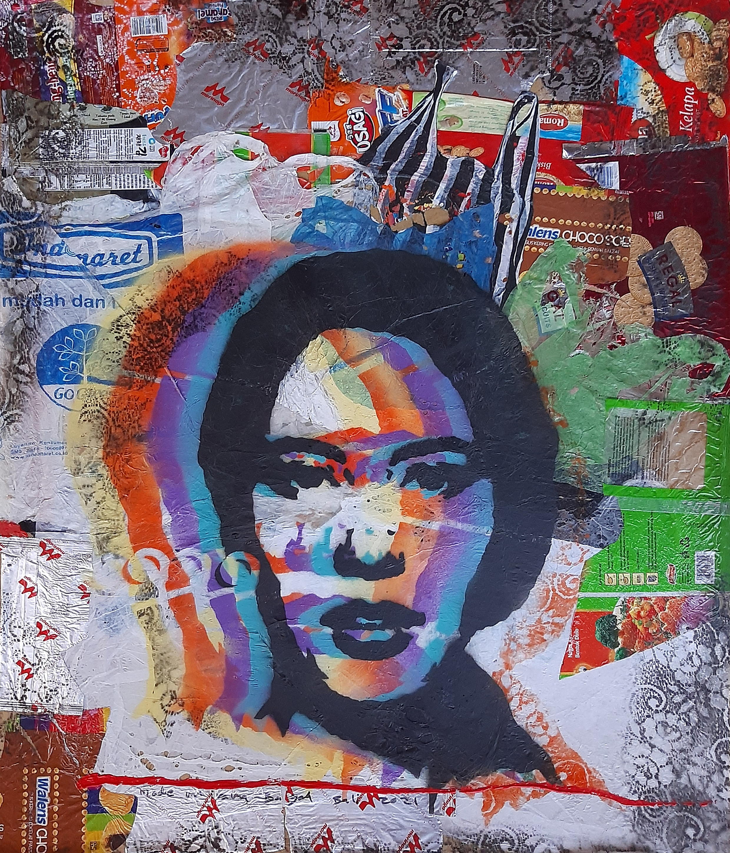 Acrylic Paint and Plastic Trash on Recycled Paper