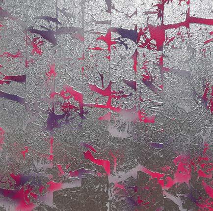 spray paint, silver foil on canvas