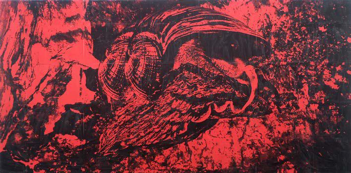 Xerox on 70gsm red paper paste on wood panel with glue from ashes burned Krack Studio's