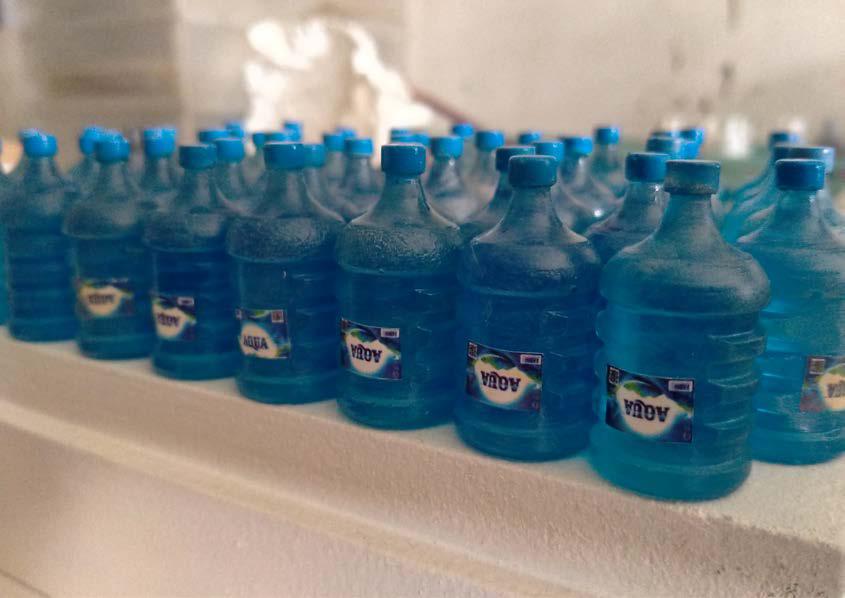 Painted plastic bottles, watercolor drawing on 125 gr paper