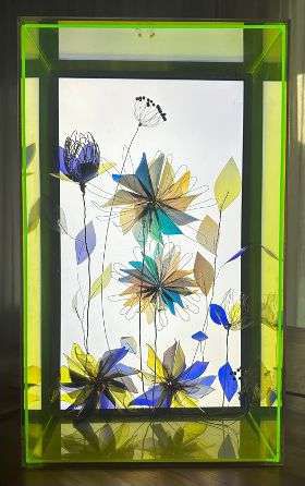 Layered Handmade Abaca Paper and Mulberry Lace Paper on Walnut and Cherry Wood Frame