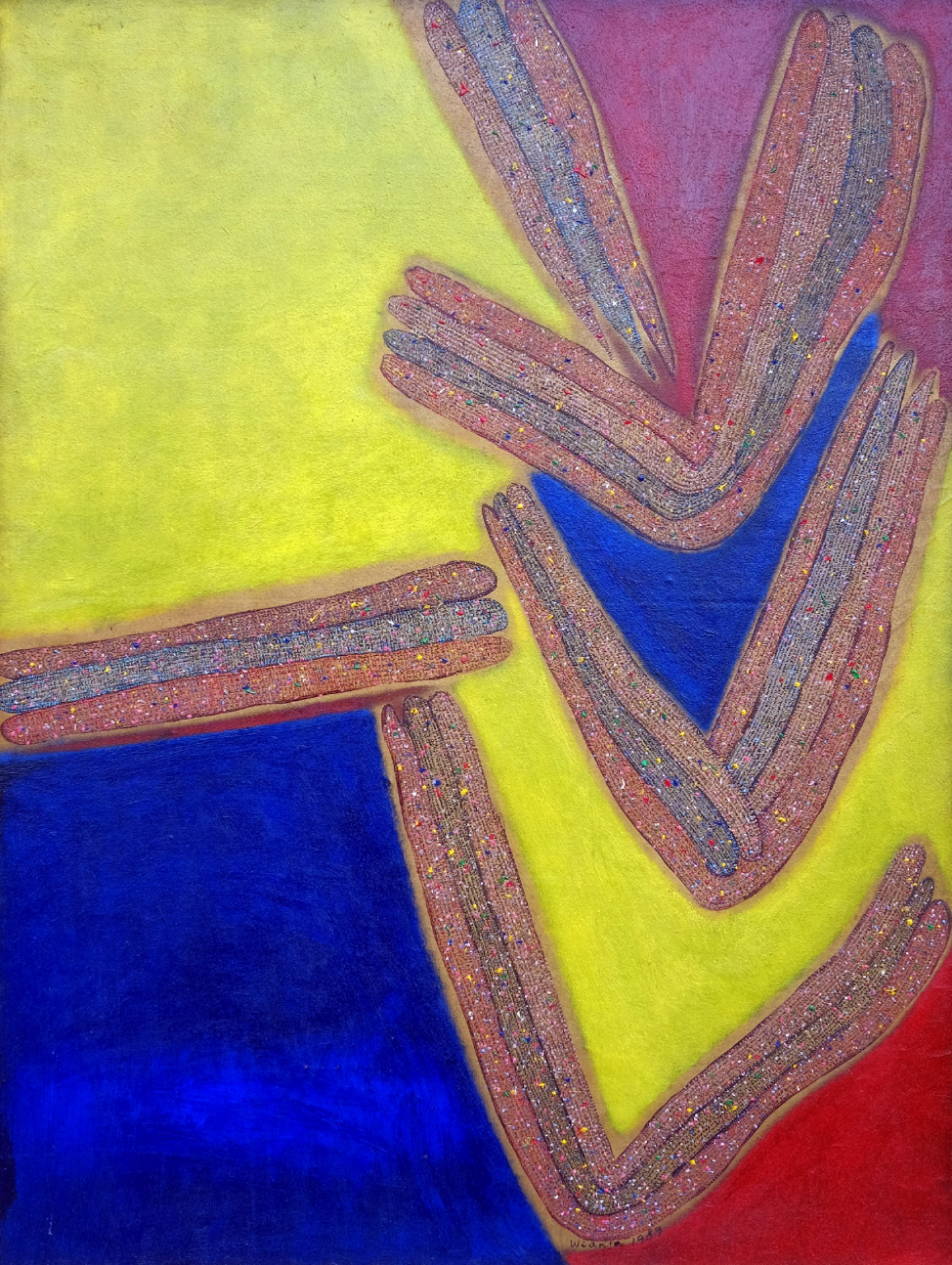 Acrylic Paint, Natural Color, 24 Karat Gold and Plastic Waste on Recycled Paper