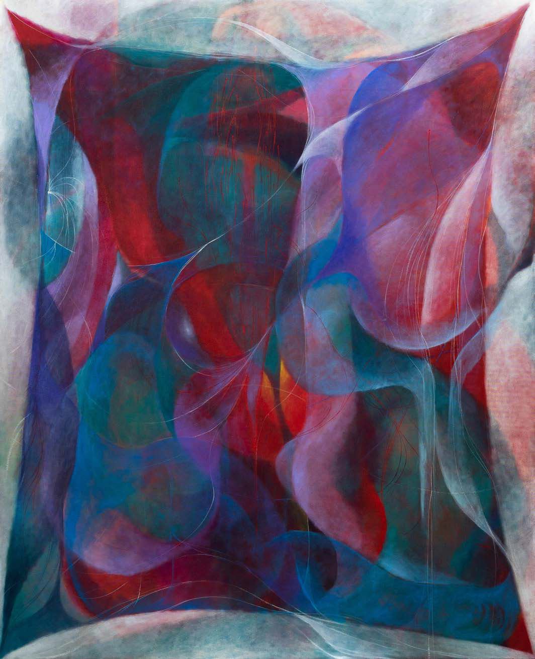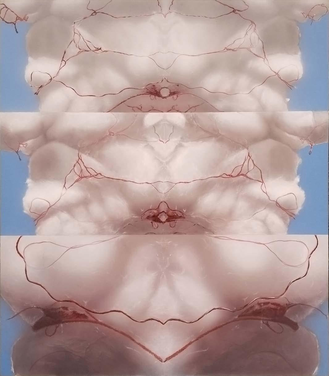 Iron rust dye, elastomeric waterproof, transparent gesso and acrylic on canvas