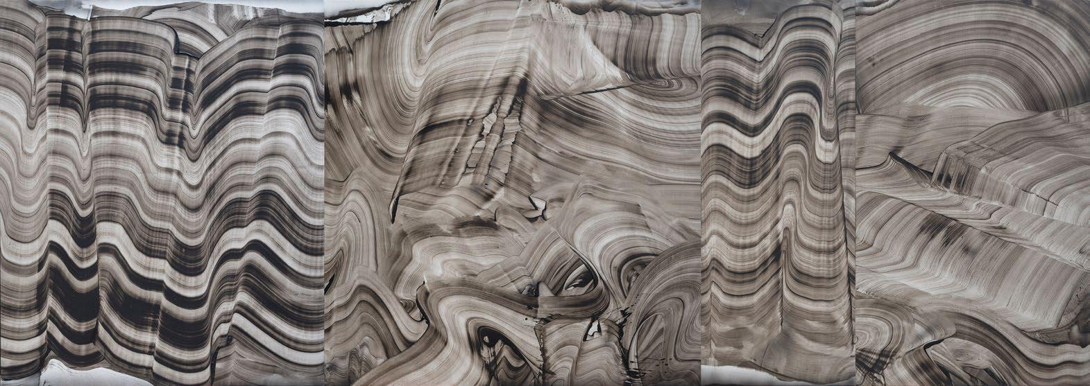 IKN soil, Lapindo mud, Merapi volcanic ash, palm oil charcoal and coal on canvas