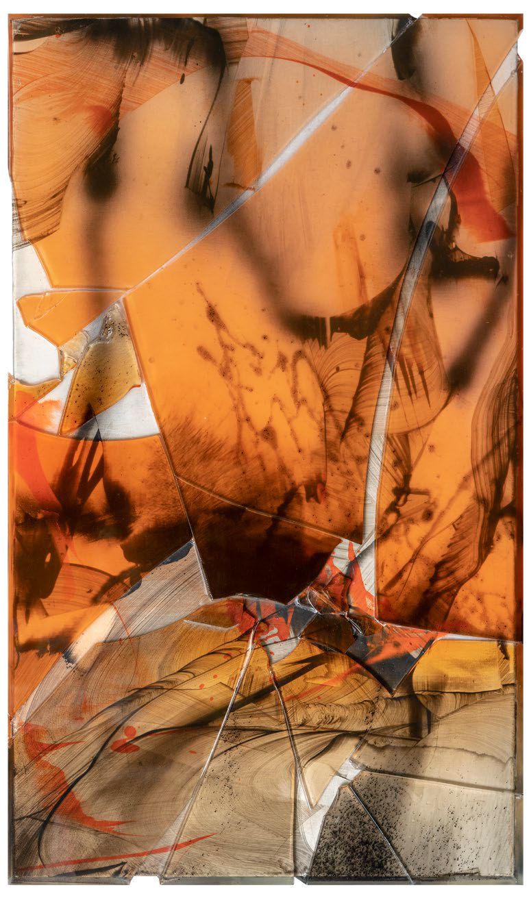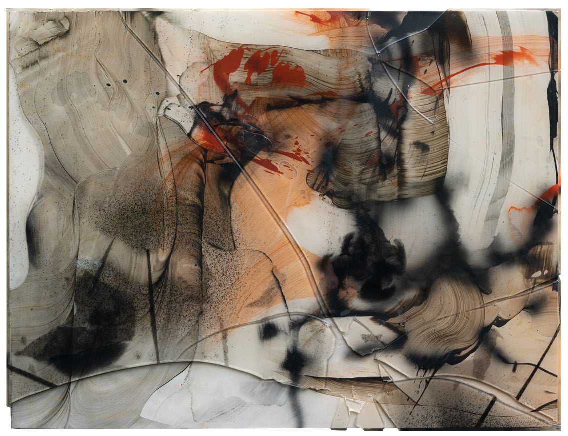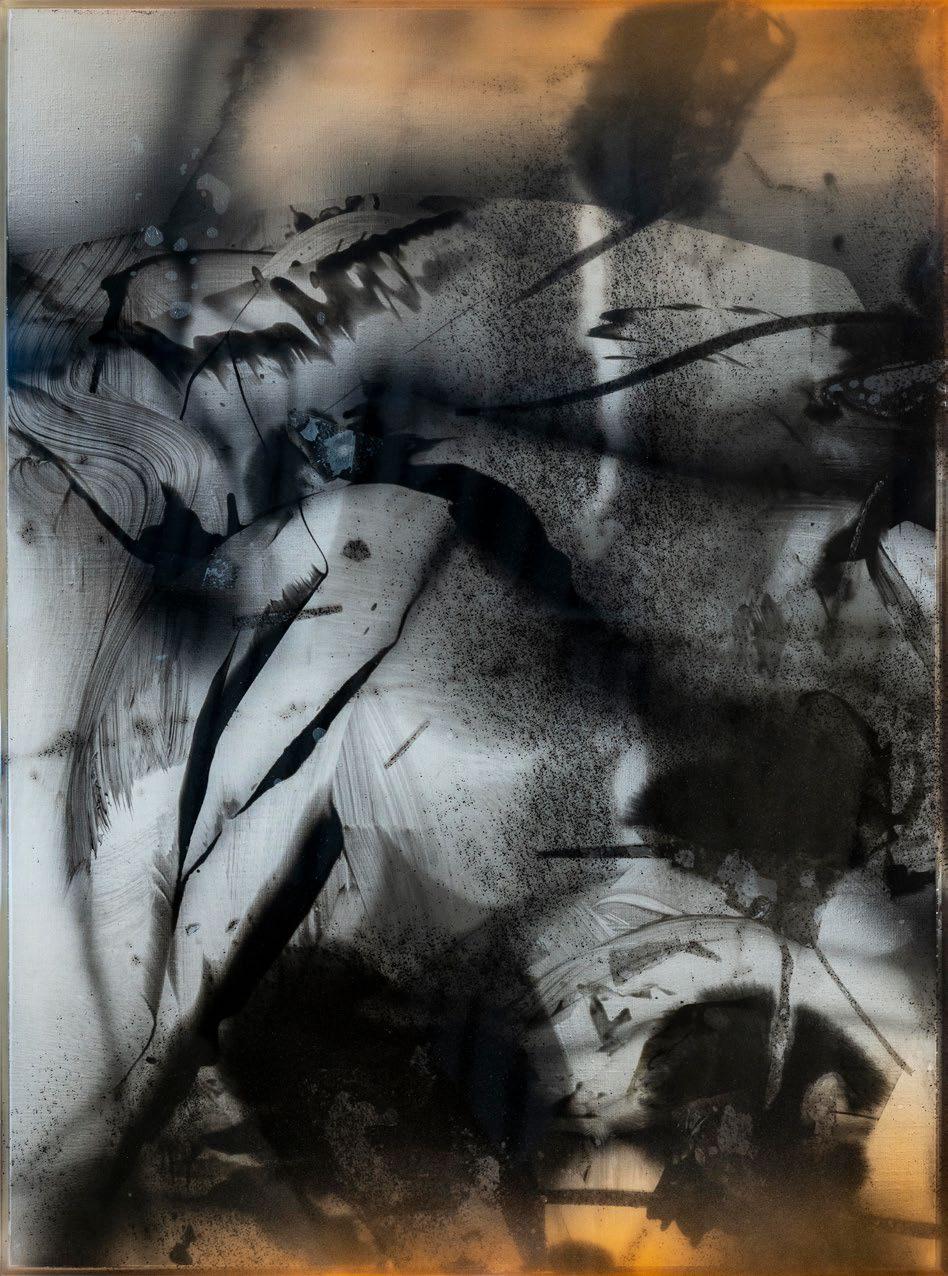 Coal, lacquer, pigmented resin and canvas on wooden panel