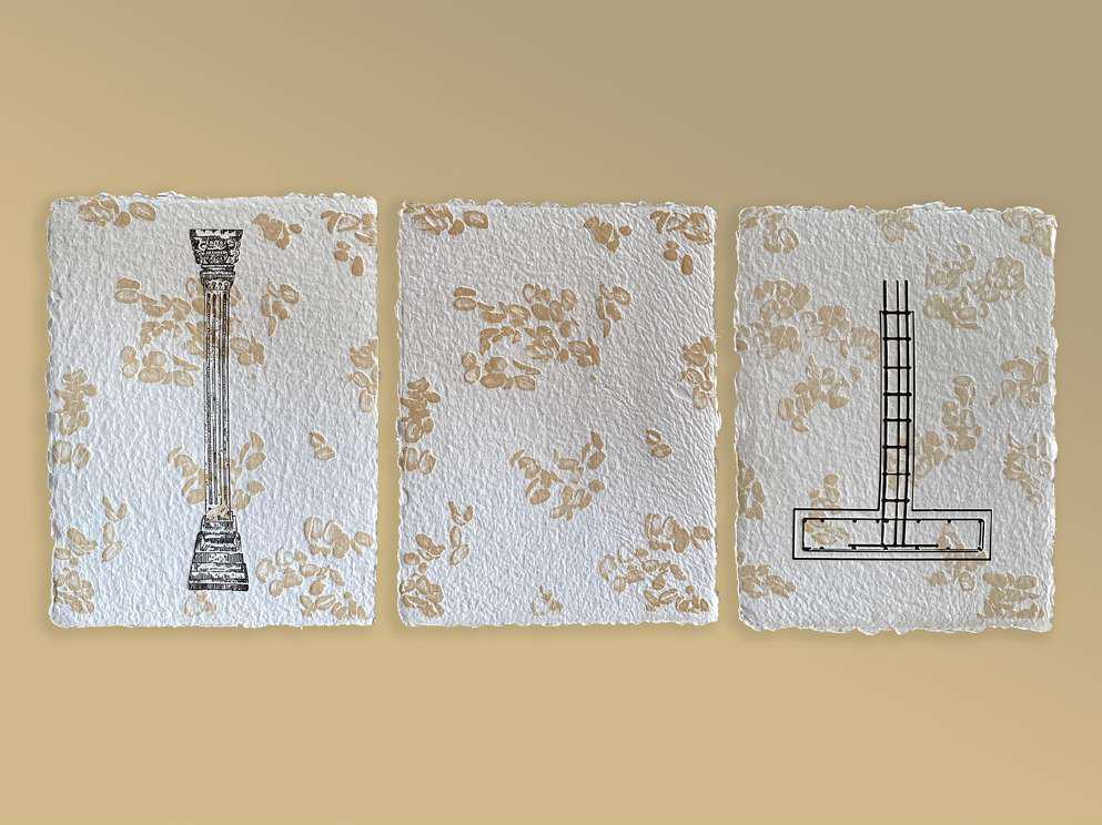 Two-colors letterpress printing on handmade recycled deckled paper