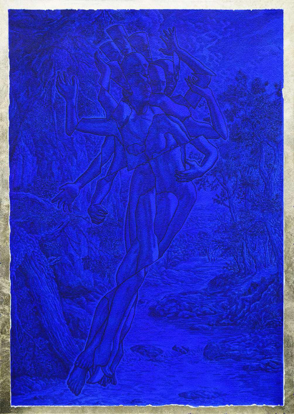 watercolor, ink and acrylic on 2ply 300gsm arches paper with wood frame and gold leaf