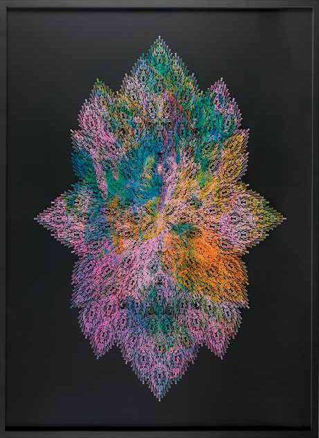 Paper hand cut, ink, plexiglass, canvas, acrylic