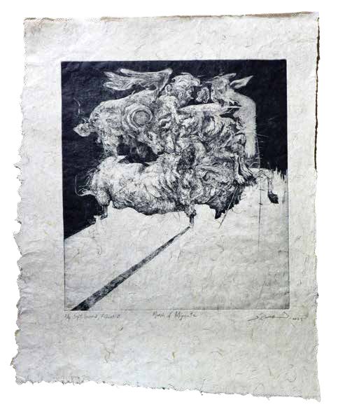 Acrylic, soft pastel, oil pastel and watercolor on paper