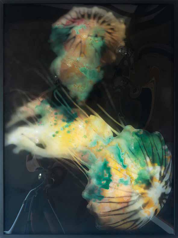Akrylic paint, ink, thermal UV print, on multilayer plexiglass