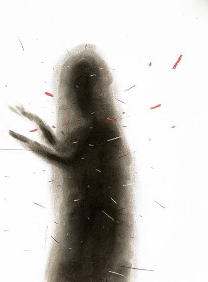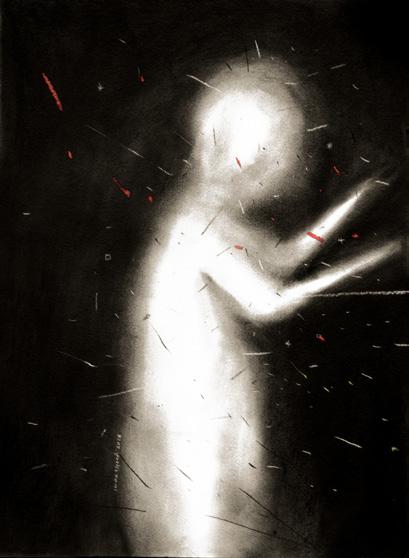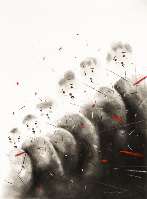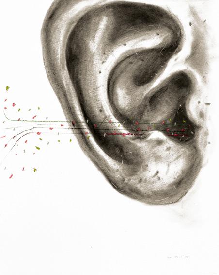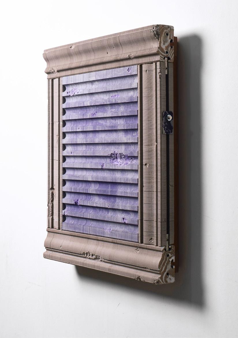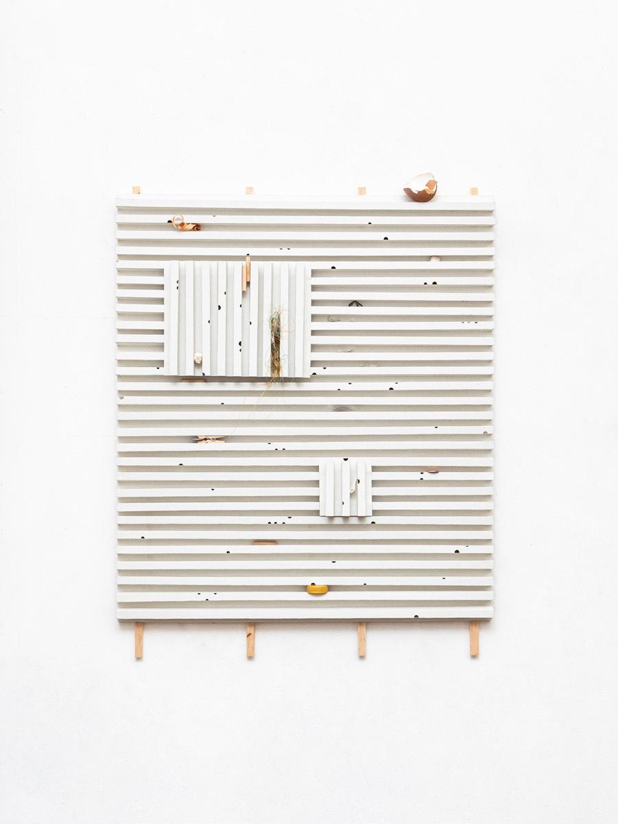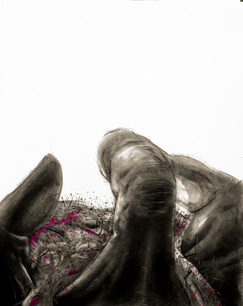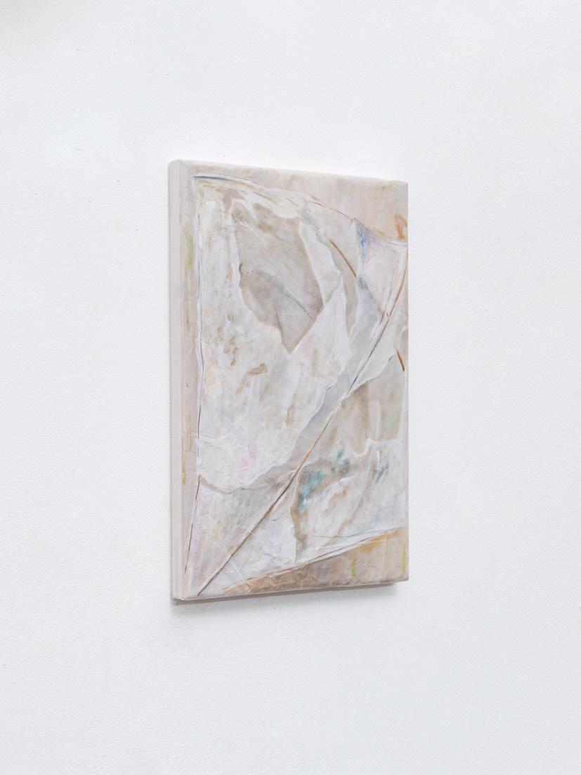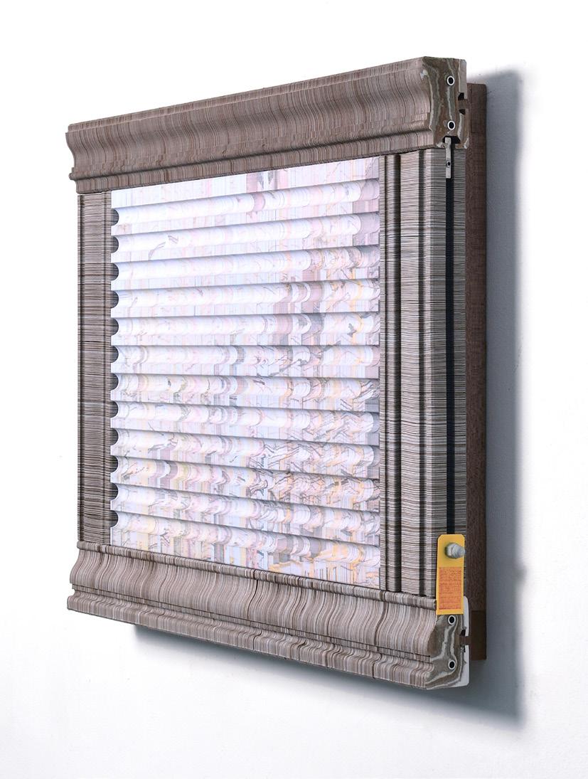 papier-mâché, washi, charcoal, soft pastel, wood, fabric, marble, and aluminum