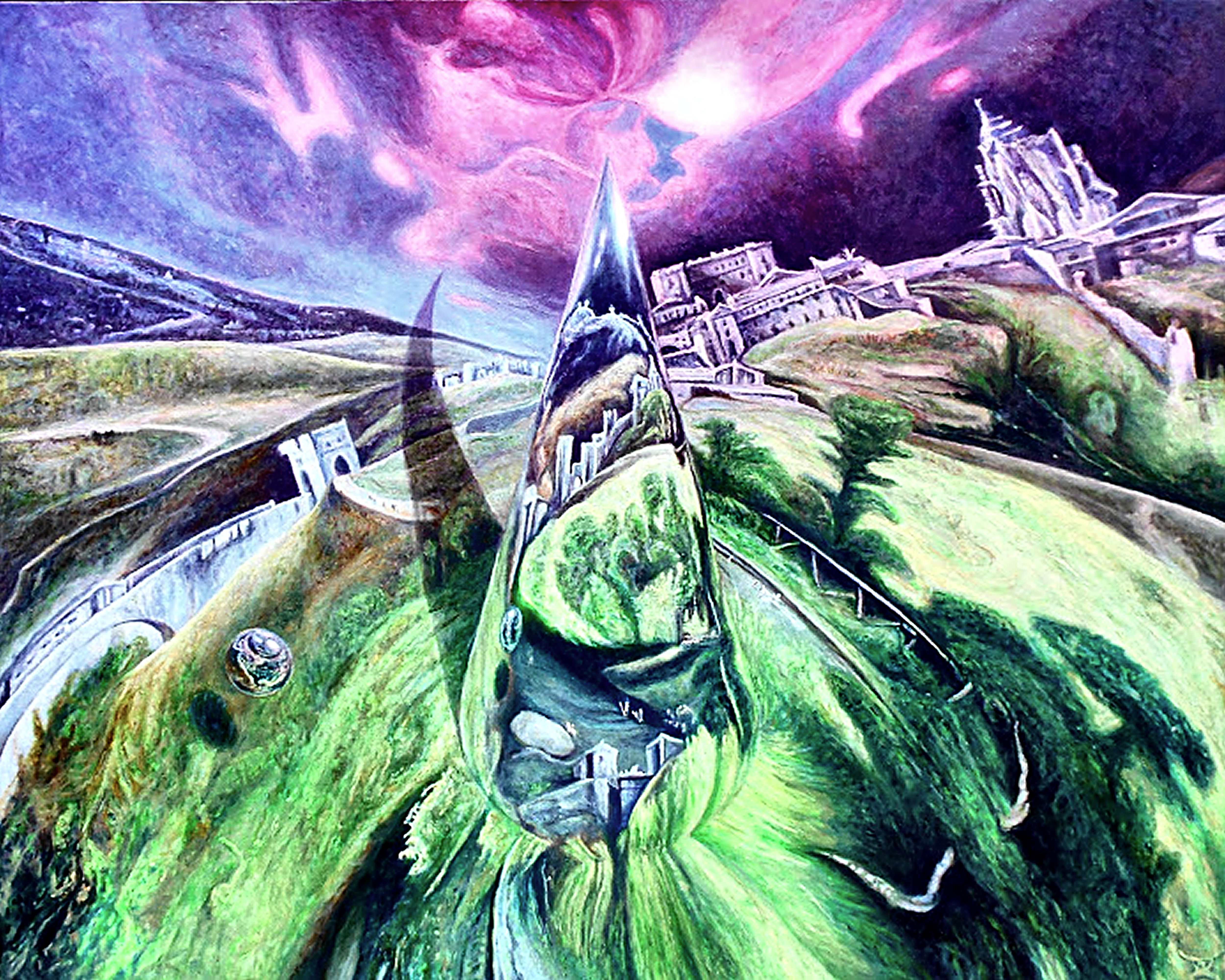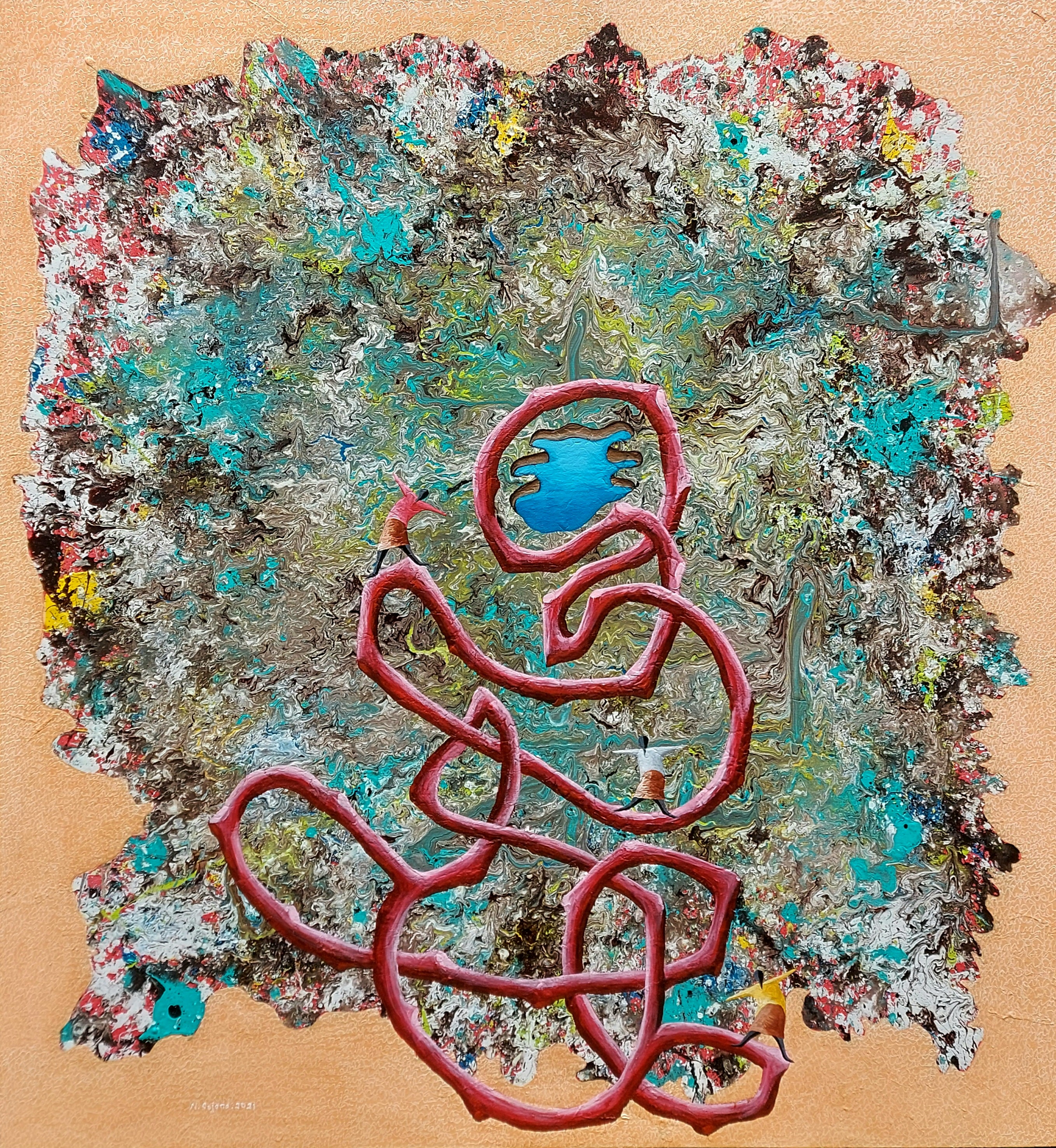 Mixed Media, Oil and Spatial on Canvas Laid on Board