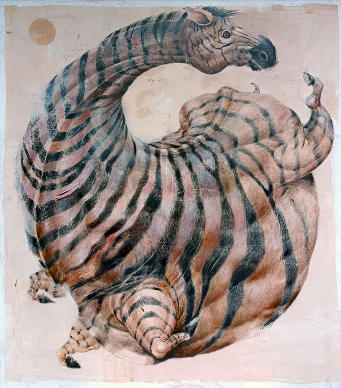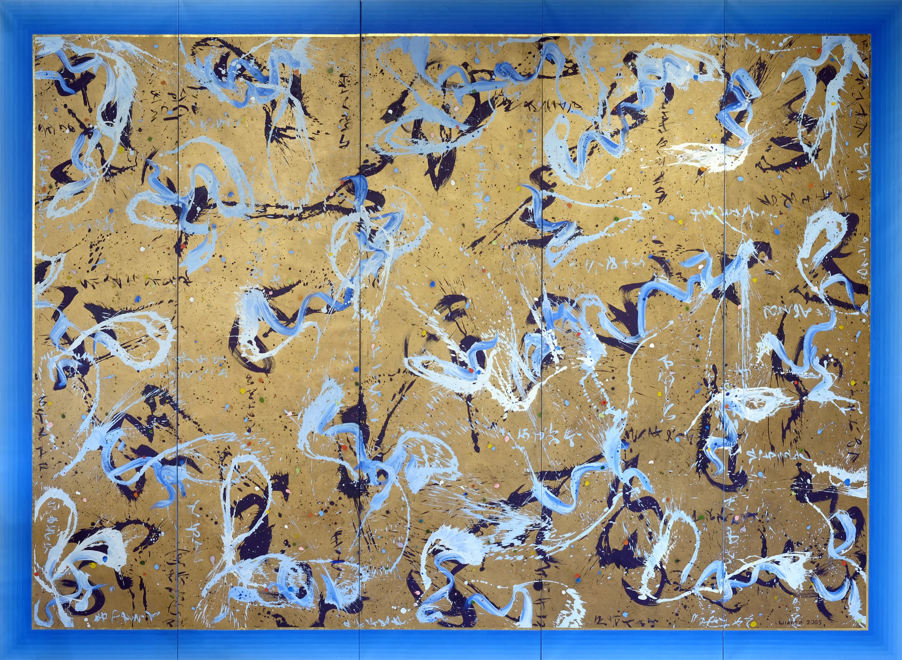 Acrylic Paint, Natural Color, 24 Karat Gold and Plastic Waste on Recycled Paper