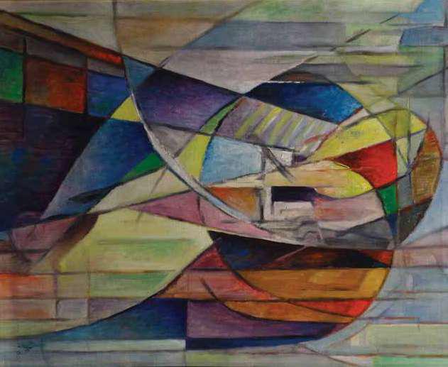 Oil paint, lacquer paint and polyurethane clear coat on aluminium sheet