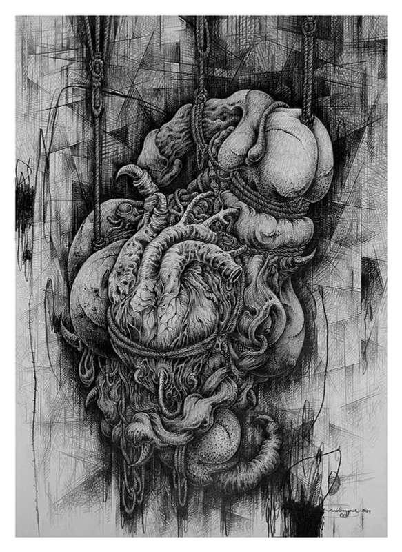 acrylic and ink pen on 2 layer plexiglass