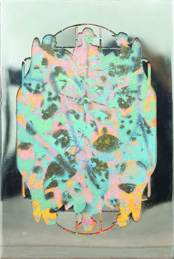 ink, spraycan, chrome on 2 mm acrylic sheet, stainless steel frame