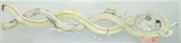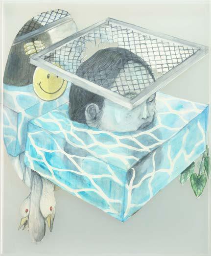 ink and watercolor on arches paper, acrylic frame