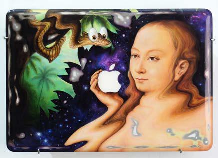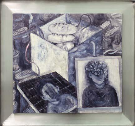 acrylic and oil on canvas, iron frame