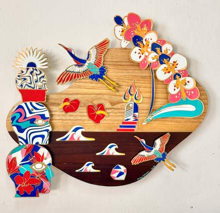 automotive paint on brass etching mounted on wood