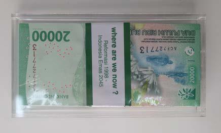 4 sheets of 20,000 Indonesian Rupiah banknotes and 96 sheets of acrylic on book paper, wrapped in clear plastic