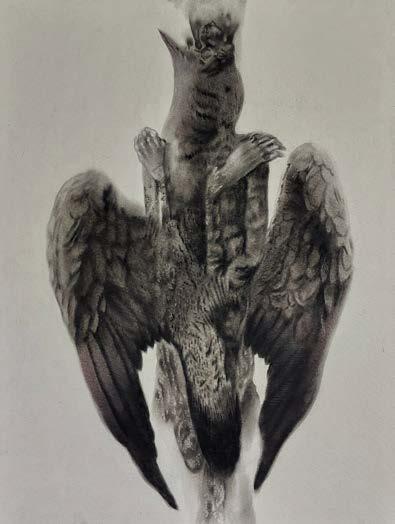 charcoal on paper collage with gold leaf