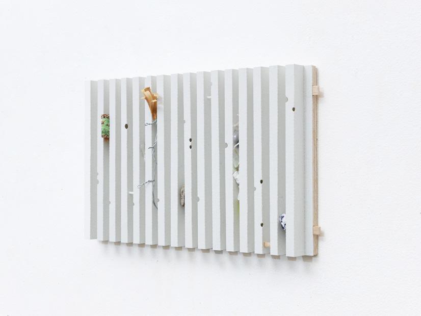 paper, balsa wood, eggshell, wood shavings, dowels, glass, iron, wooden clips, coin, bottle cap, nylon string