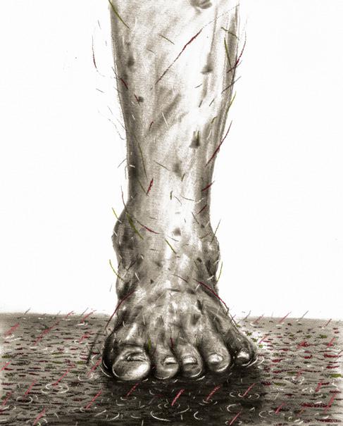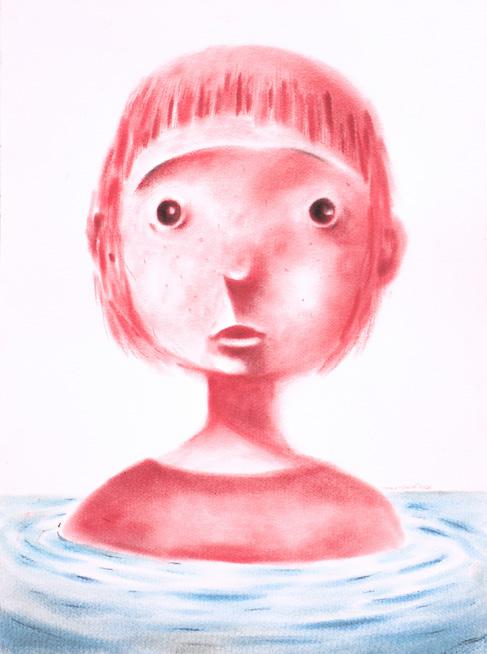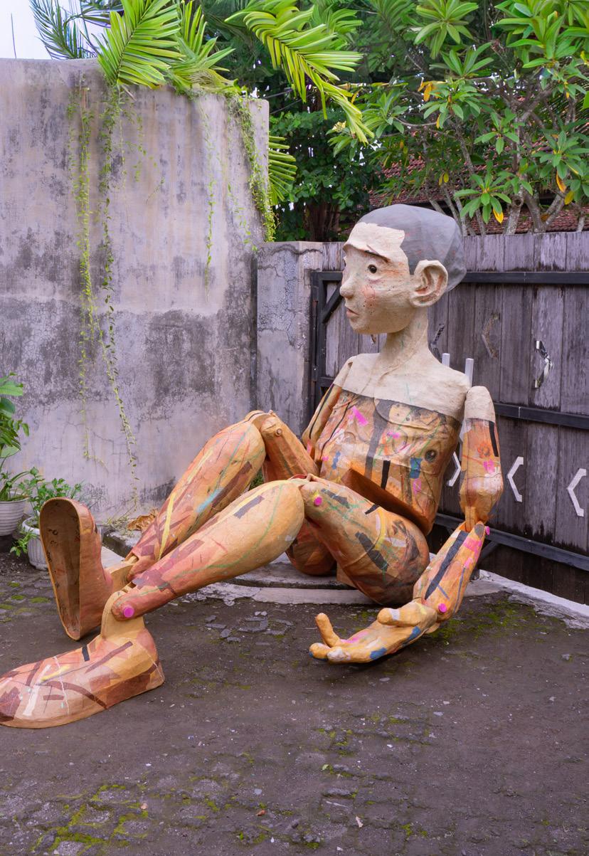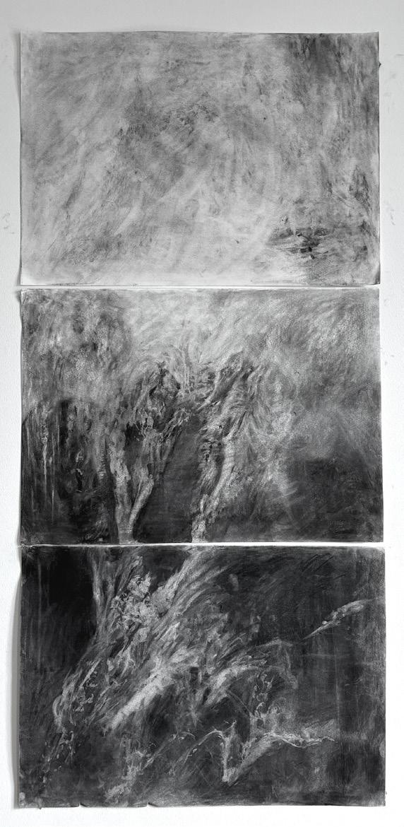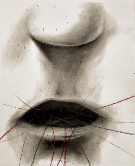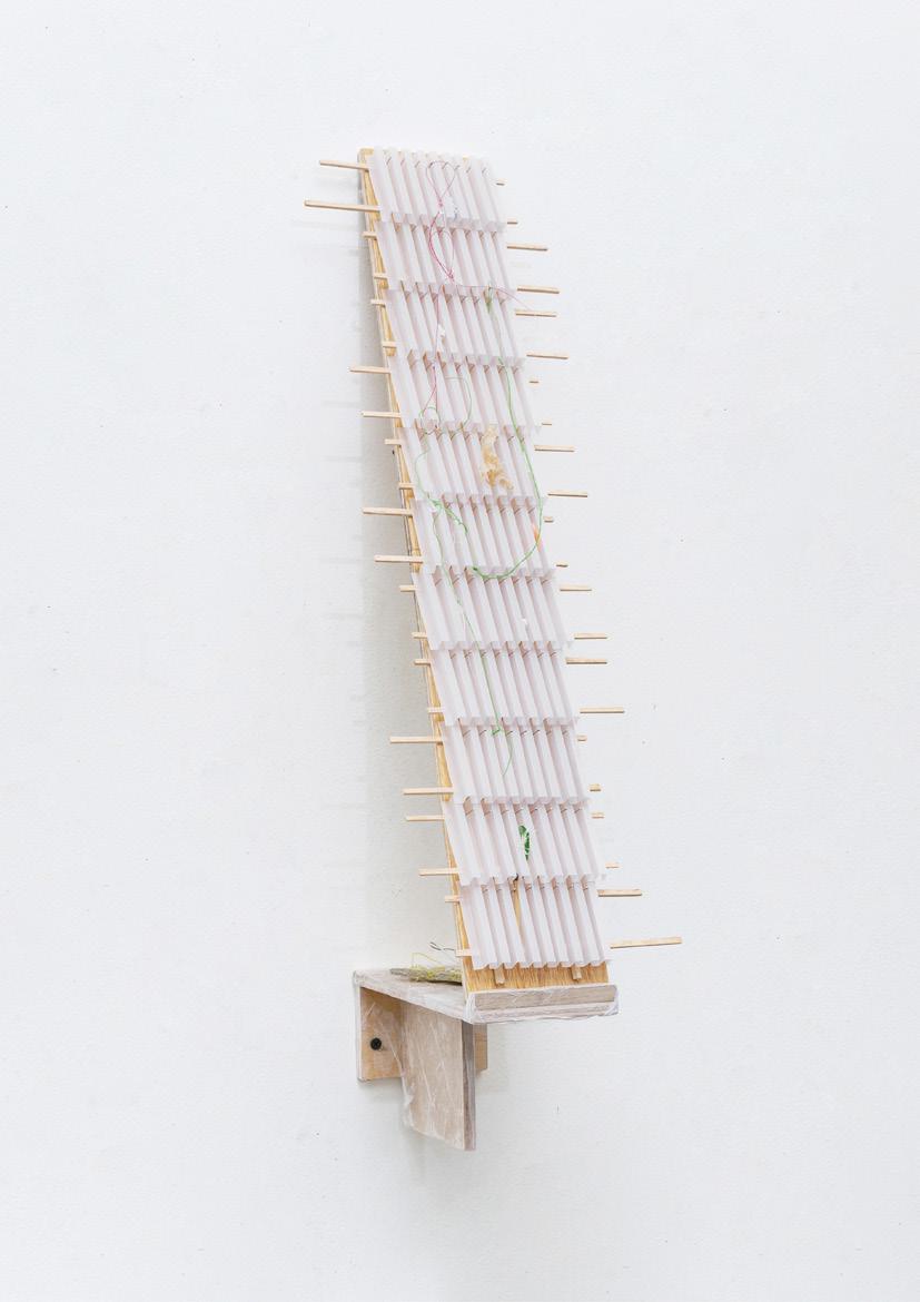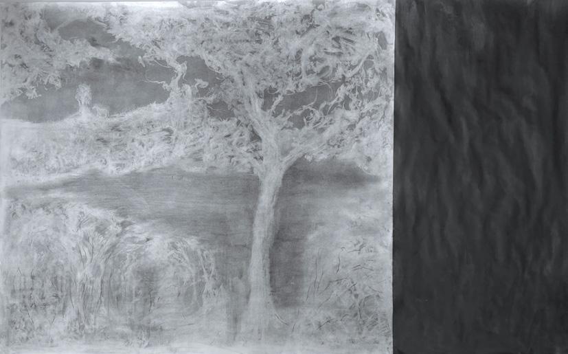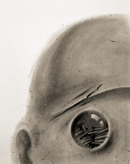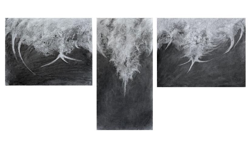 papier-mâché, washi, charcoal, soft pastel, wood, fabric, marble, and aluminum