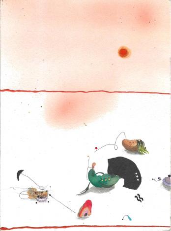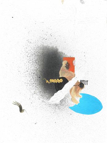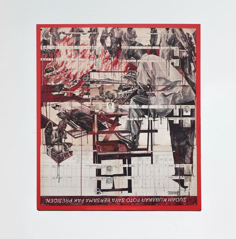 water-based oil paint on 16 sheets of found documents