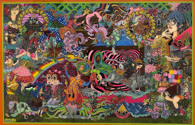 Acrylic, Silkscreen, Spray on Canvas
