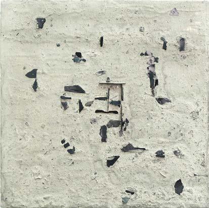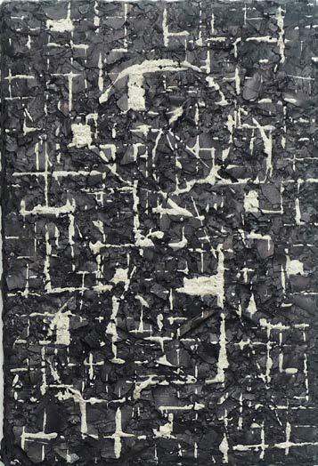 remnant from Krack Studio's fire with acrylic medium mounted on canvas