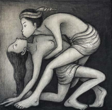 charcoal on paper collage with gold leaf