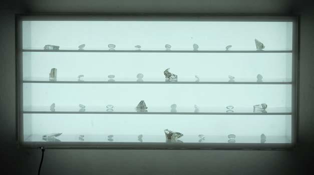 residual glass shards from the burned Krack Studio, PMMA (acrylic sheet), LED, power adaptor
