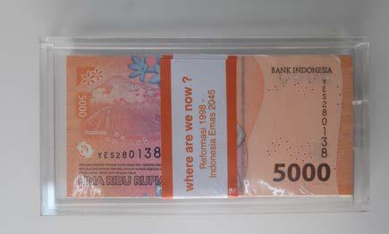 4 sheets of 5,000 Indonesian Rupiah banknotes and 96 sheets of acrylic on book paper, wrapped in clear plastic